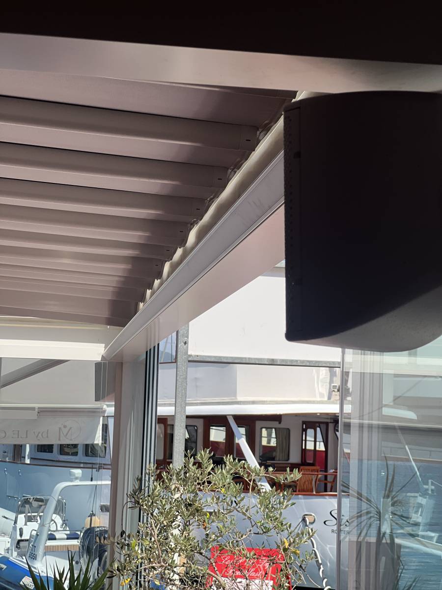Un restaurant sur le port de Cogolin sonorisé par Samba Audio Pro