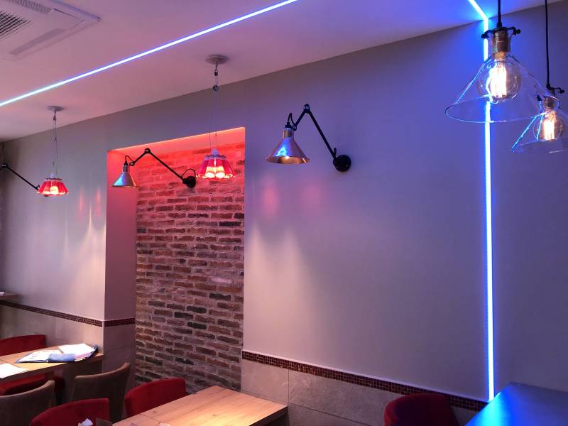 Samba Audio Pro s'est associé au projet pour repenser l'installation son et lumière, plus particulièrement sur le design et l'intégration de gallons Led au plafond qui forment le G emblématique.