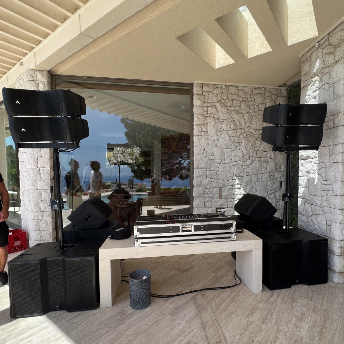 À sa demande, nous nous sommes entièrement occupés de la partie son et lumière pour cette soirée privée !